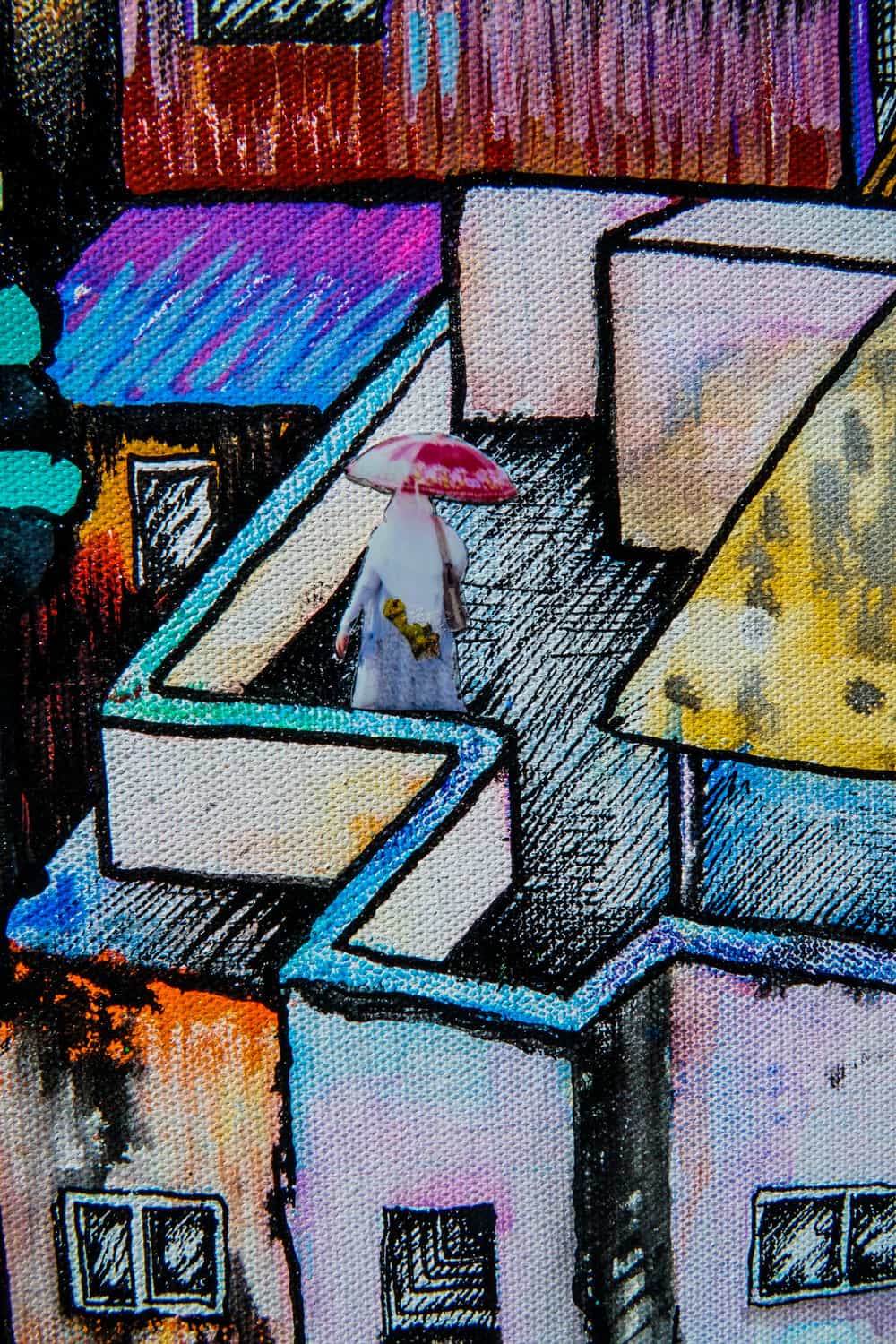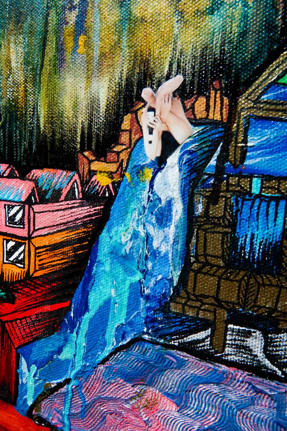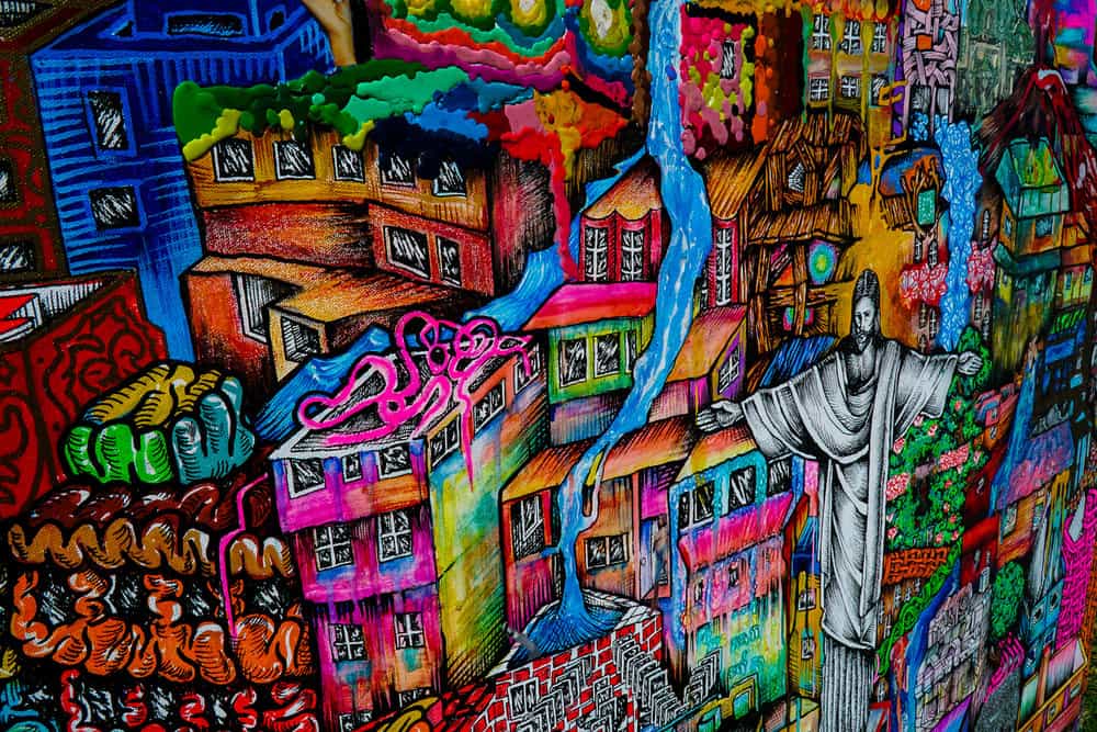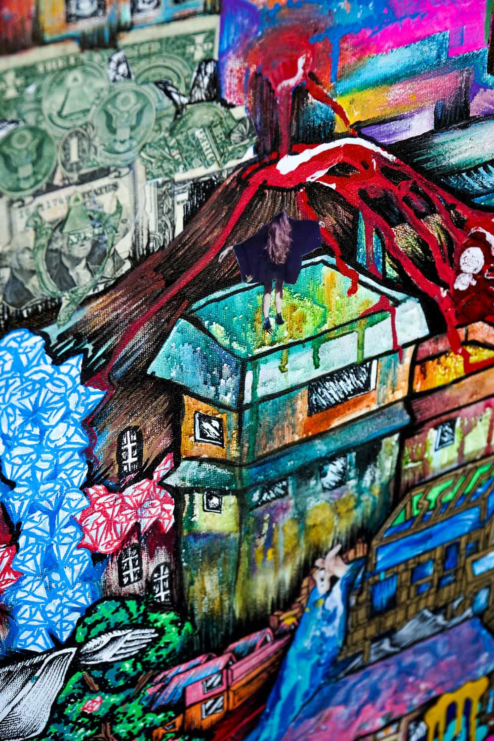 I’ve always been fascinated with favelas and the unregulated ingenuity and creativity that goes in to the creation and maintenance of these societies. Almost everything in these vast and unique towns is make shift and constructed by the people who reside in them. This inspired me to make a piece depicting the favelas in which every building was painted with a different material. I placed the famous Christ the Redeemer landmark in the middle, because these diverse, colorful, seemingly impossible Favelas get swept under the rug when it comes to government funding and public attention.